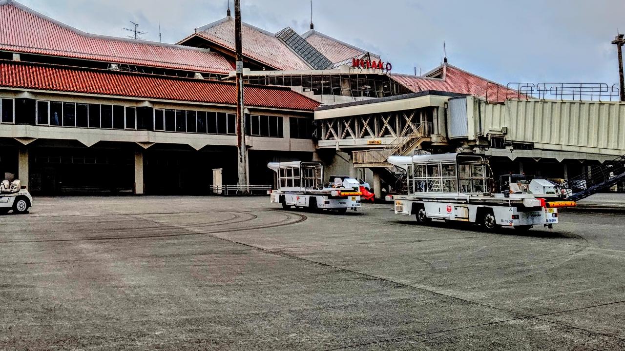 大東へのフライトがゲートクローズされたあと、宮古空港のボーディングが準備される那覇空港 空港