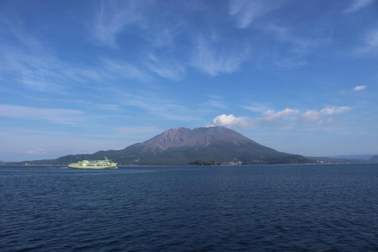翌朝、朝食後にチェックアウトして高速船で鹿児島港へ。画像はその途上の桜島。