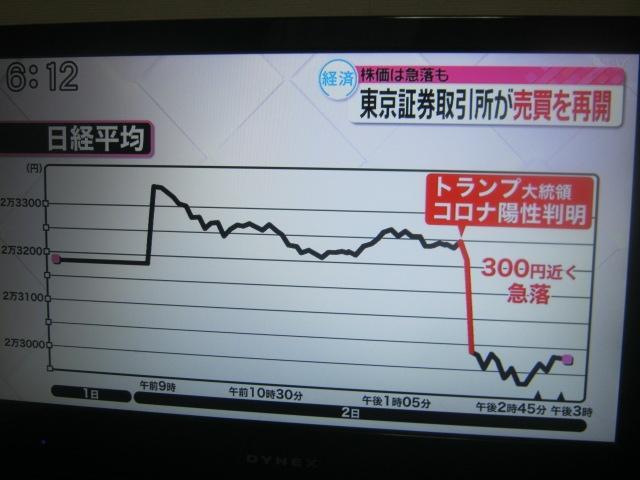 そういや、この日は某国の花札大統領(当時)のコロナ感染で大騒ぎになっておりましたな。日経平均株価が急落してた。