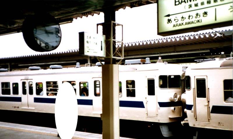 この開催中だけに設置された、万博中央駅でのひとコマです。中途半端なほとんど訳の分からん画像ですが、右上の駅名標に「BAM・・・・」、隣接駅名の「あらかわおき」と牛久の「う」が見え、それを証明しています。