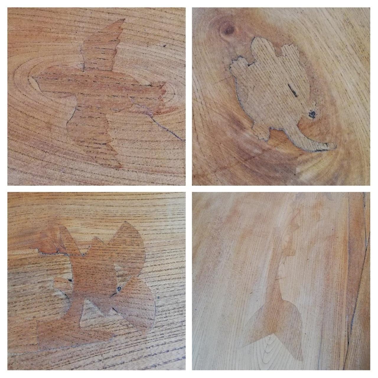 床に何やら模様があります。魚の横の、この大きな模様は? 南アメリカ大陸に見えるけれど、、、左の壁の向こう側を覗いて見たら、やっぱり!北アメリカ大陸に続いていました。