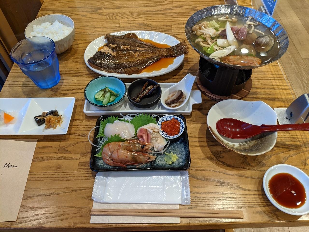 この日は和食。知床サライの夕食は1泊目が洋食、2泊目和食です。この中では、カレイの煮付けが、とても美味しかった! レストランへ来る前に部屋でチューハイ500mlを飲んだので、なんとなくほろ酔い気分です。