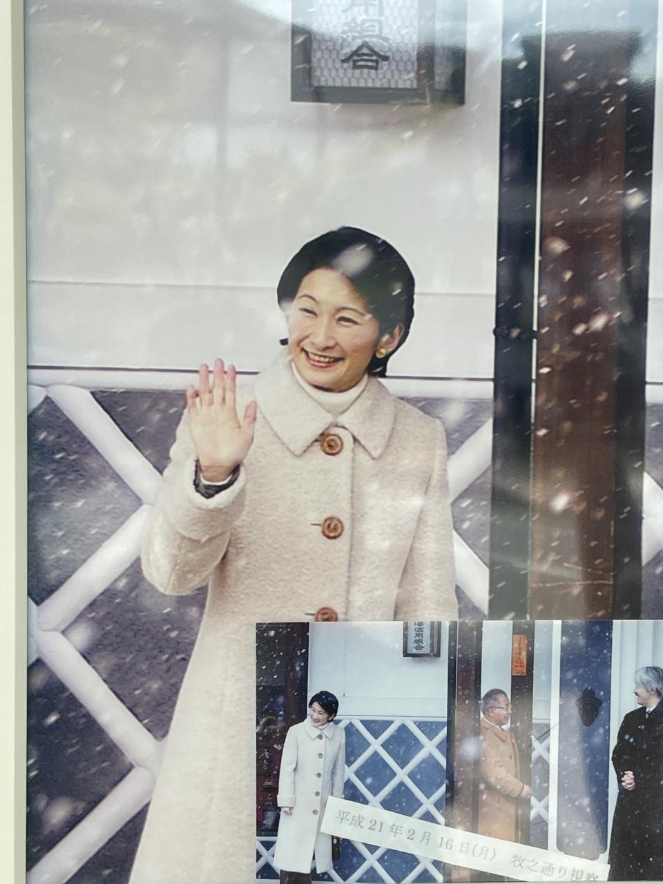 以前秋篠宮ご夫妻がいらした際の写真がありました。なぜか殿下ではなく、妃殿下のアップ。寒そう。