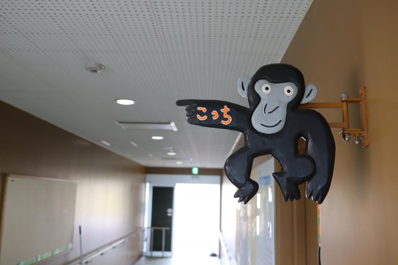 防災アクリル越し 地上のオオカミの様子が伺えます