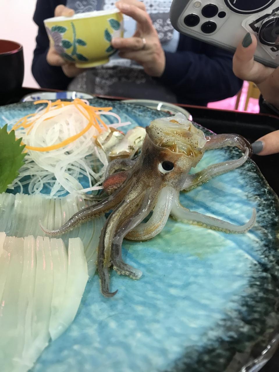 朝市をうろつきながら、朝ごはん。 朝市は思っていたより沢山開いてた。半分以上は開いていたね。