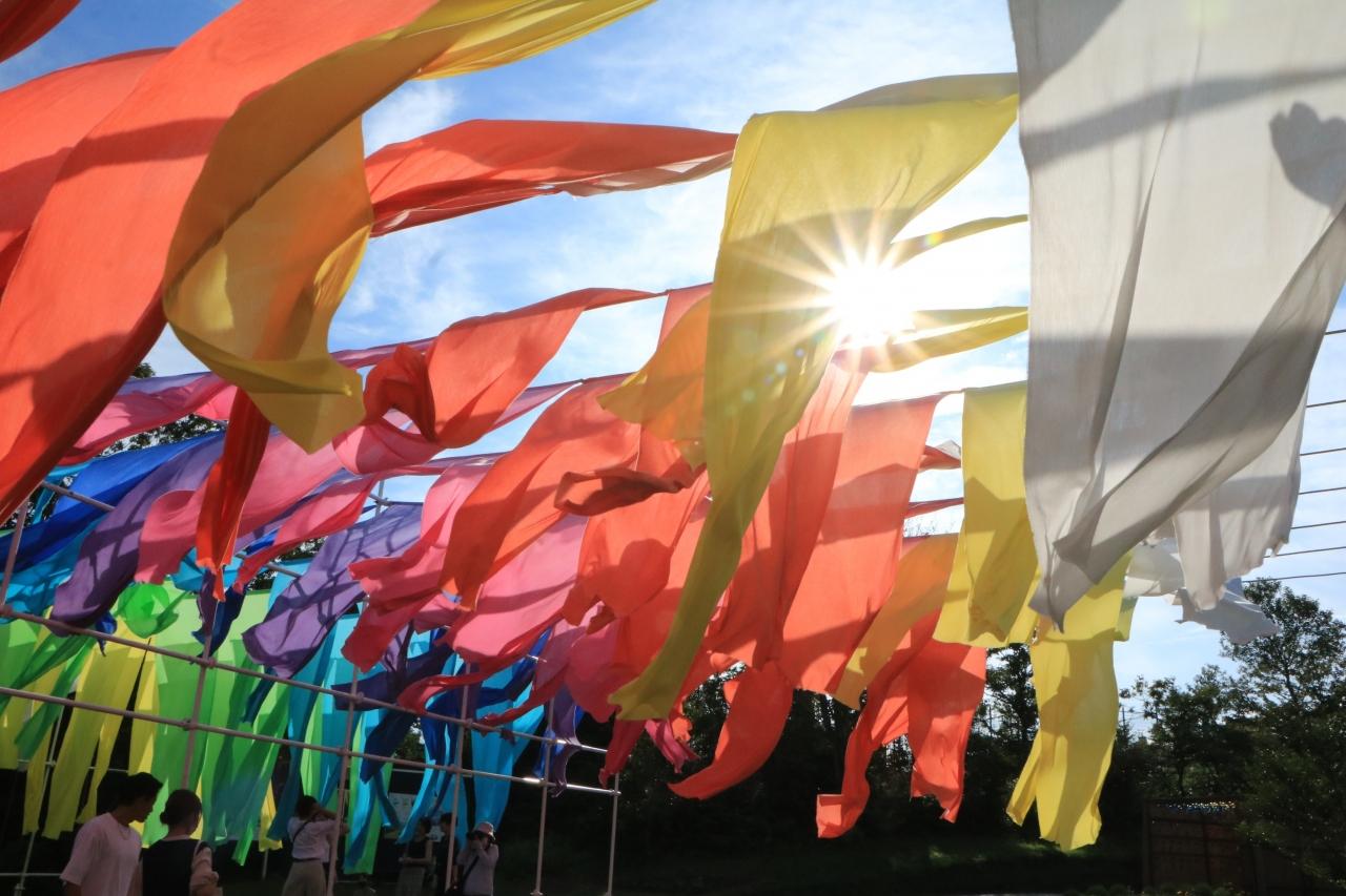 去年もあったね、高島特産ちぢみの虹のカーテン♪
