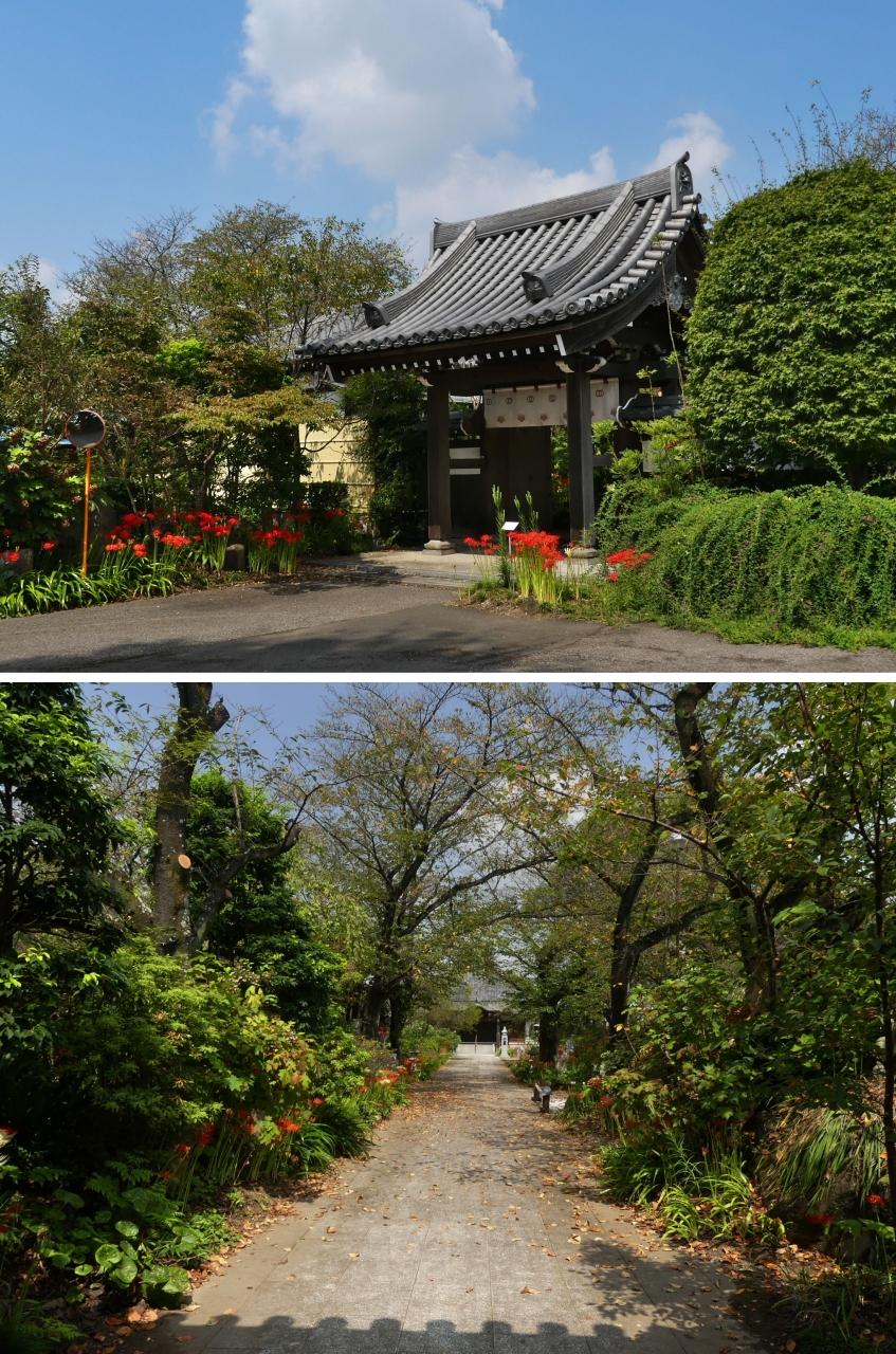 山門から本堂までの間でも、ヒガンバナの開花が進んでいます。