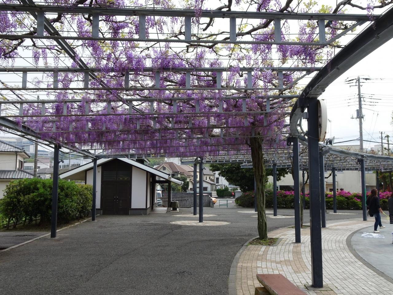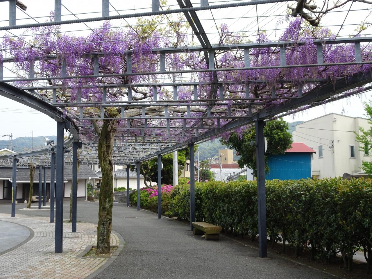 松川沿いの松川藤の広場では藤の花が