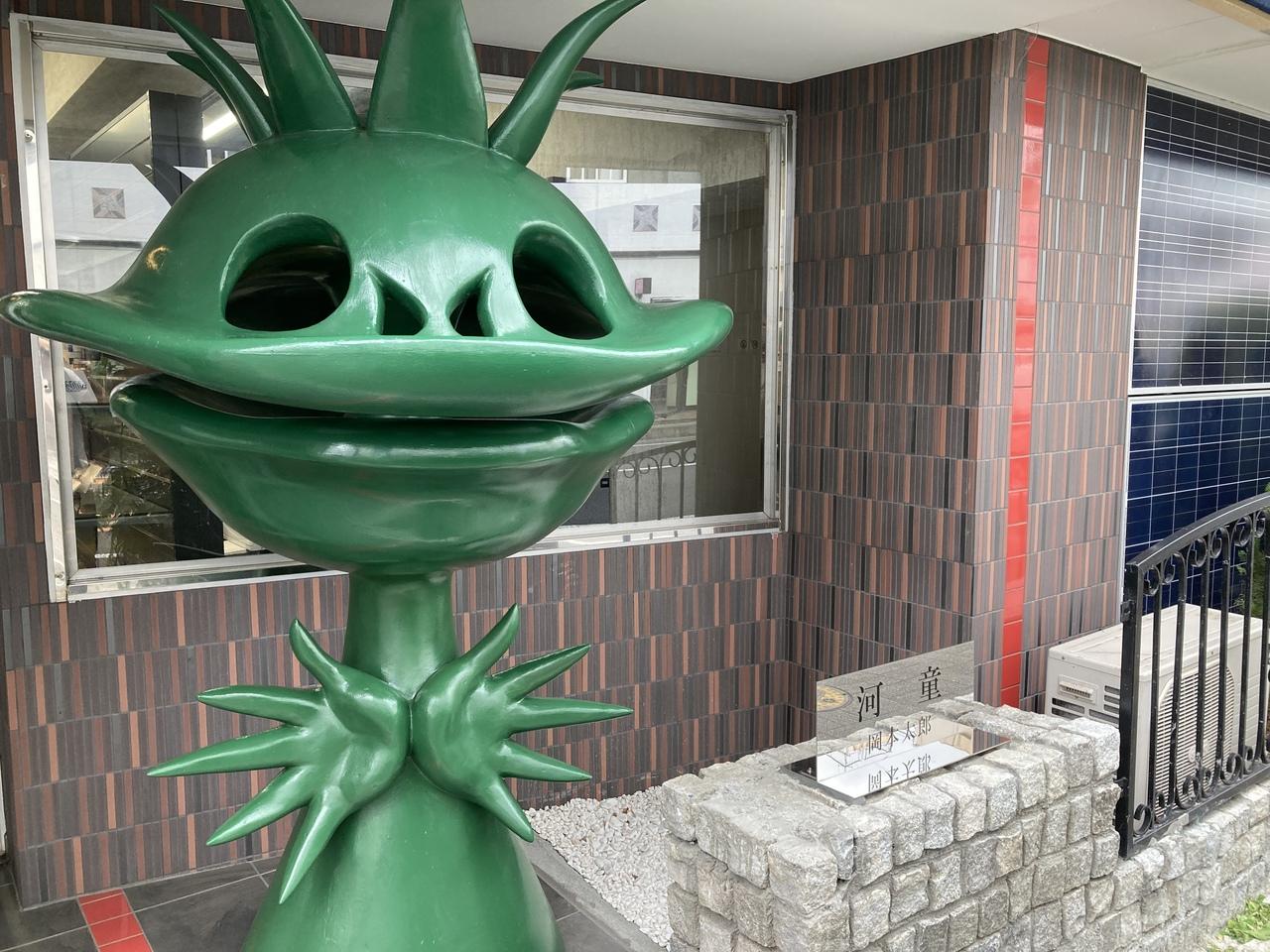 入り口には岡本太郎作の河童が鎮座しています。