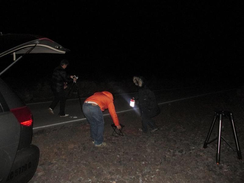まだ真っ暗なうちにホテルでピックアップアしてもらって未明のマウナケア山麓星空観賞に出かけます。 -