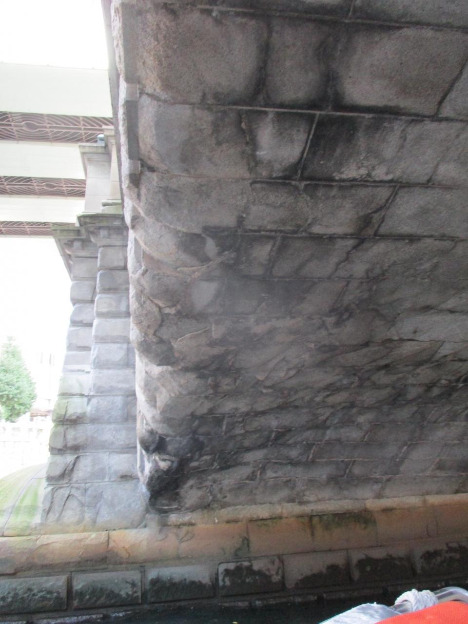 真っ黒になった日本橋の裏側の一部。関東大震災で燃えた船がぶつかってきて焼けた跡だそうです。