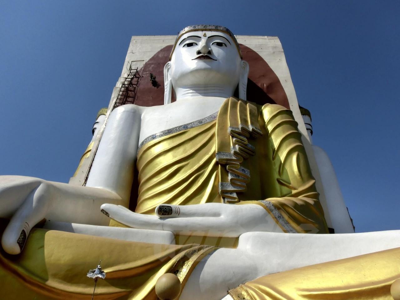 この炎天下のミャンマーで屋根無いて…いくら仏様でも暑いよ…。