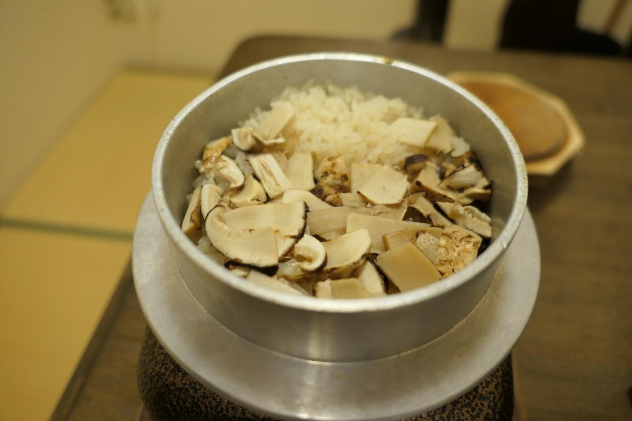 先附、前菜、刺し身、土瓶蒸し、煮物、焼き物、揚げ物、鍋とすべて松茸。