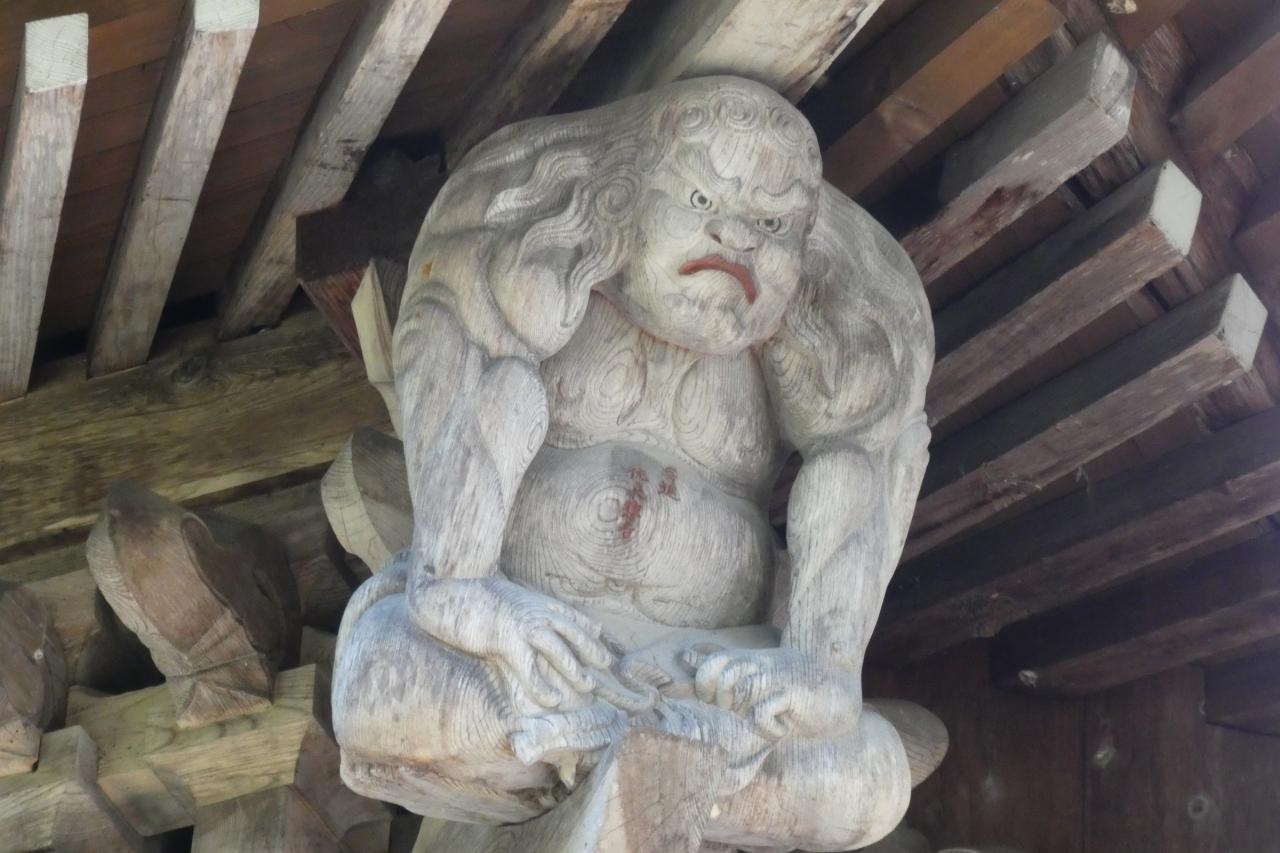 社寺建築の装飾彫り物の中に、屋根を支える力士像がある。西日本では、邪鬼と呼ぶところもあるようだ。