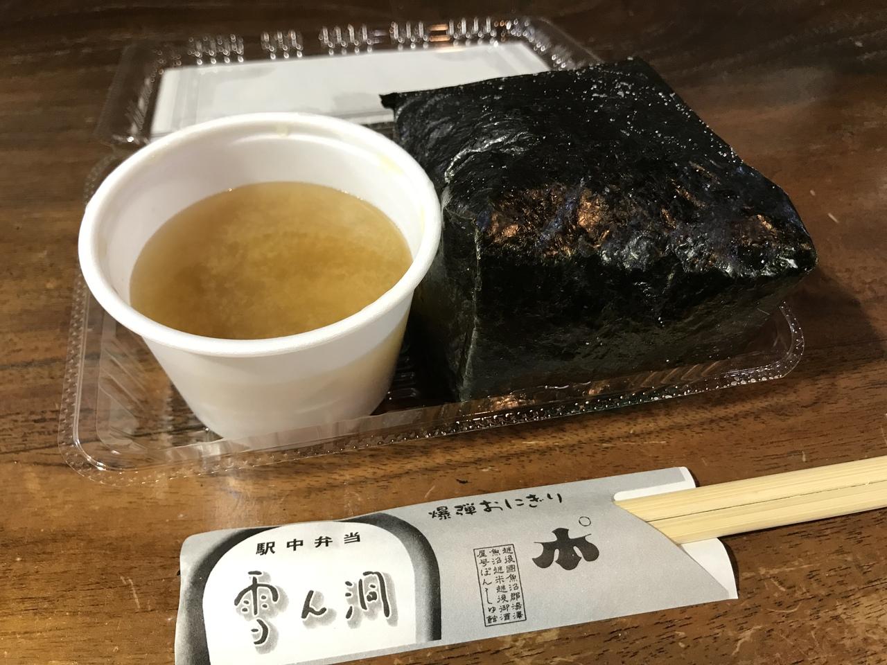 温泉に入った後、「雪ん洞」で爆弾おにぎりを食べます。 -