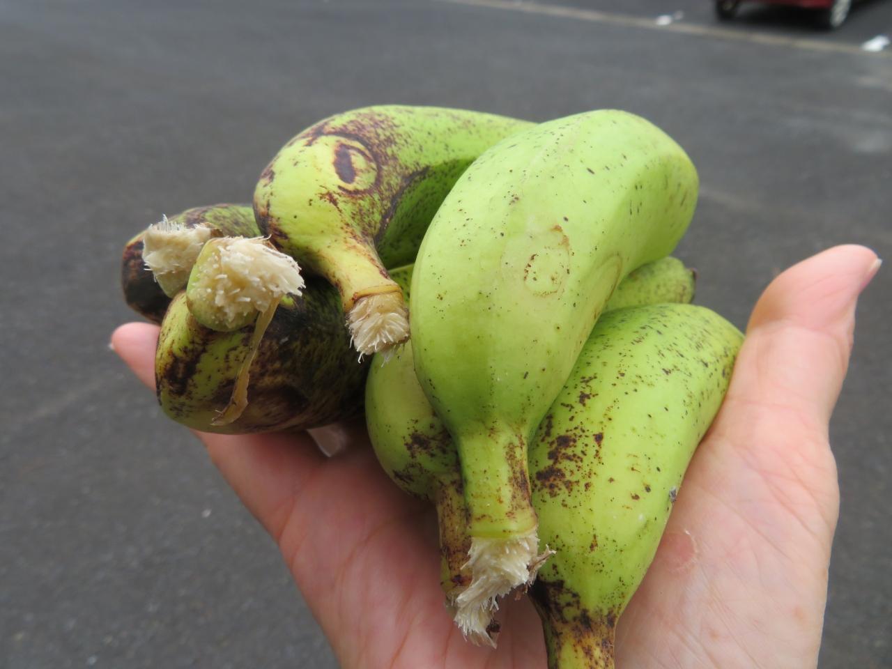おじいさんが庭木の剪定をされていて、どこから来たの?と話しかけられました。バナナ食べるか?って敷地内へ入らせて頂きました。代表的な沖縄の平屋家屋。納屋の外にぶら下げてあったバナナをもいでいっぱい持たせてくれました。その場でも皮をむいてくださり、食べました。