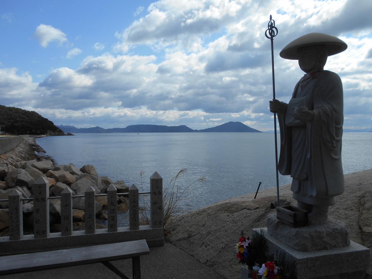 次の札所への遍路道は峠越えのルートなんだけど、かつやのご主人から「この時期は猪がでるからぐるっと海沿いをまわったほうがいい」と言われた。昨日、恵門の滝でも「猪や鹿の駆除をやっているから山道はねえ…」と言われた。実際に猟銃の音も聞こえたし。さすがにお遍路道を通っていて撃たれることはないだろうけれど、迷い込んだら危ないってことか。ご主人の言葉にしたがって、海沿いを進むことにします。 -