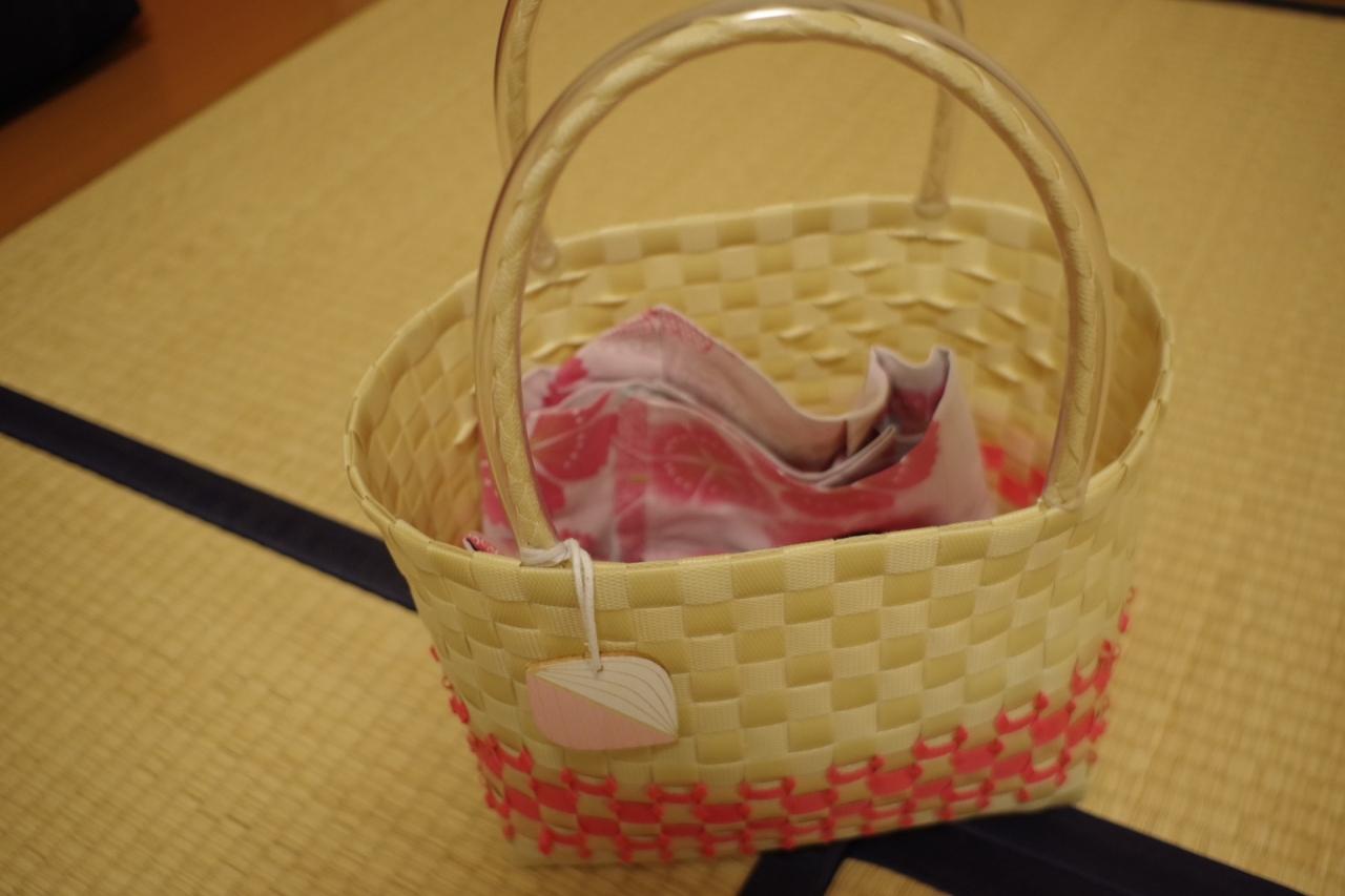 フロントでチェックイン時に浴衣と湯籠を選ばせてもらえました。
