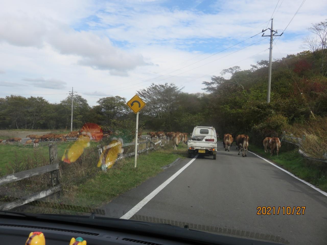 荒船風穴に向かって山道を飛ばして行くと、突然前方に牛!