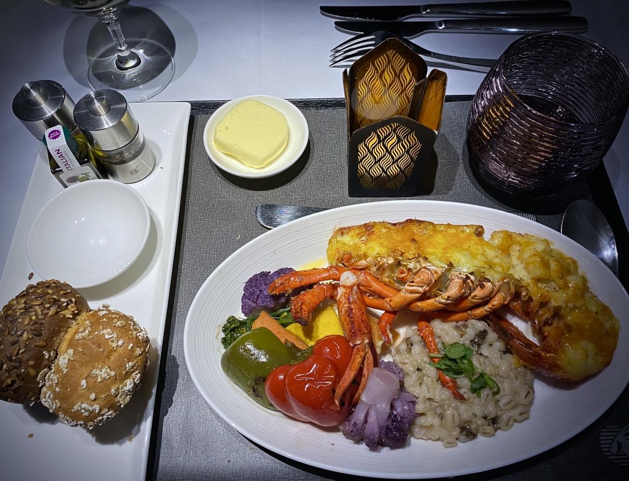 カタールの食事は、時間が決まっていなく、好きな時にアテンダントを呼んで、いつでも食事や飲み物を注文する事ができます。だし茶漬けえん 成田空港店 グルメ・レストラン