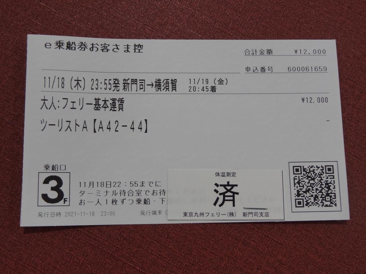 東京九州フェリーは公式ネット予約で徒歩乗船の場合、e乗船券を自宅でプリントすれば乗船手続きは不要ですが、乗船券を発券して頂きました。