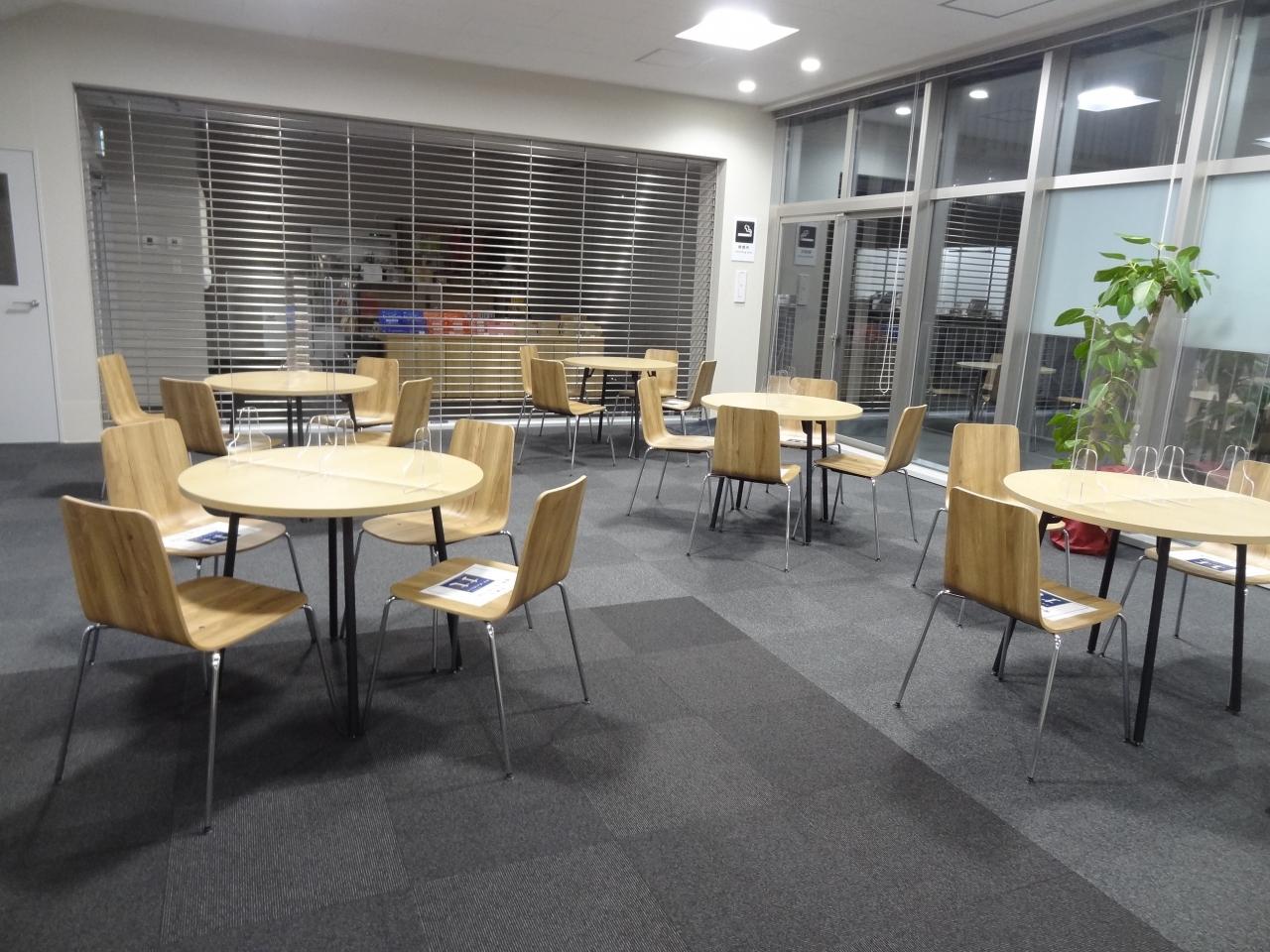 軽食コーナーで提供される料理は、こちらのテーブル席で食べられます。