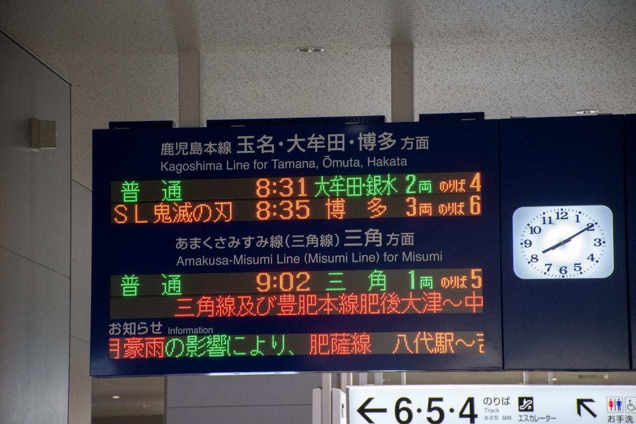 電光掲示板にもしっかり”SL鬼滅の刃”の文字が。