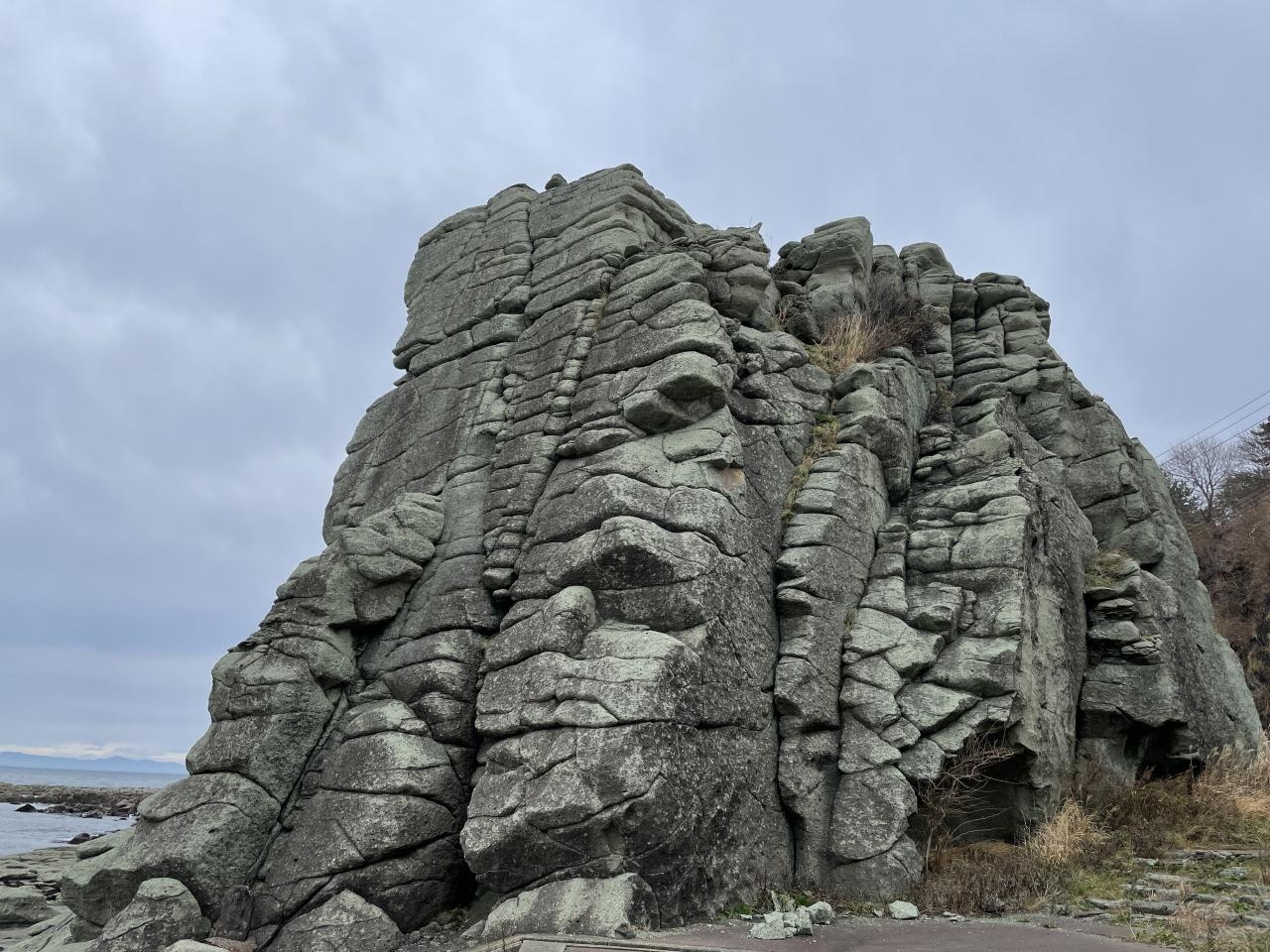 小戸瀬岩の岩肌に仏像?山寺を思い出しました。