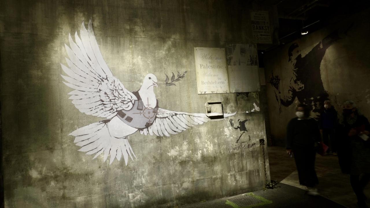 有名なアート。右側の壁に誰かがTHERE IS ALWAYS HOPE(いつだって希望はある)と書き加えた。もう消えているそう。シリアの子供を救うキャンペーンのアイコンになった。