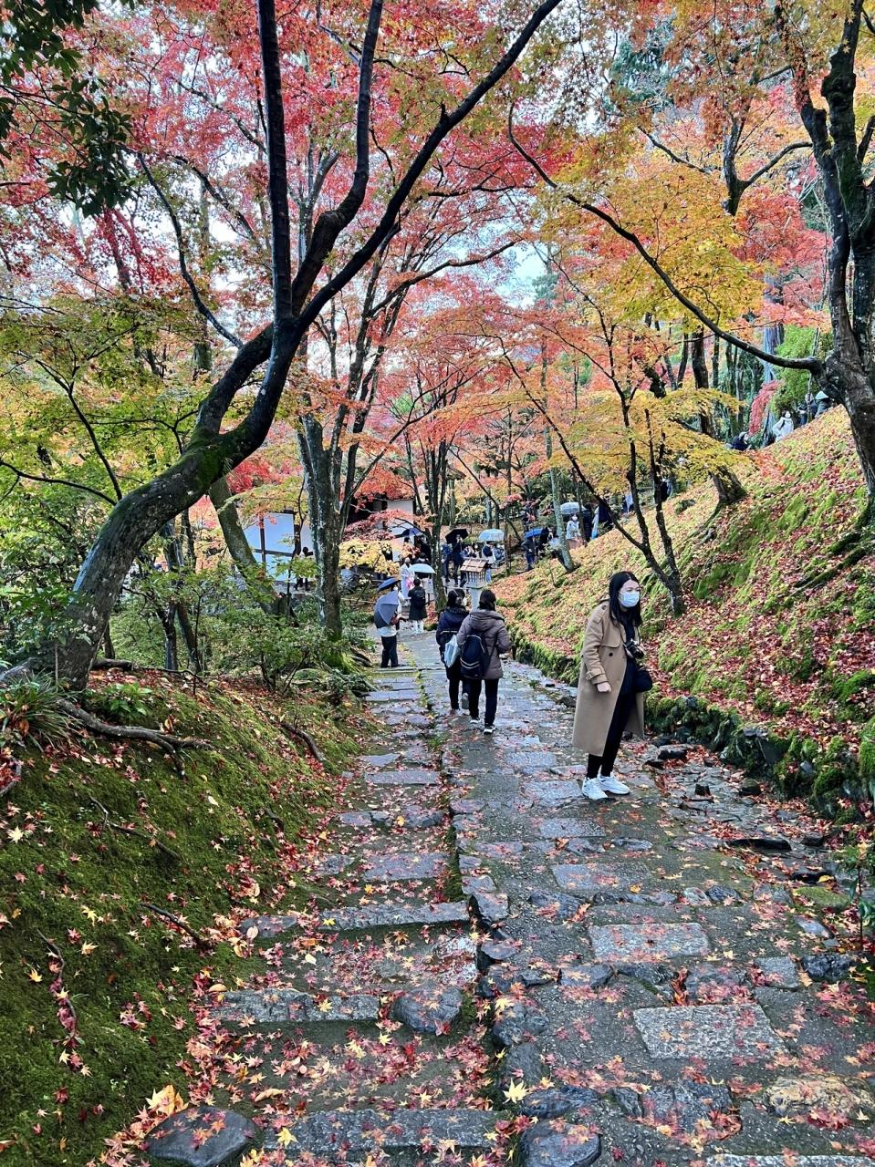 天龍寺を出て、嵯峨野の竹林へ。竹林を抜け、常寂光寺へ。また雨が降ってきたが、常寂光寺のモミジは見事だった。