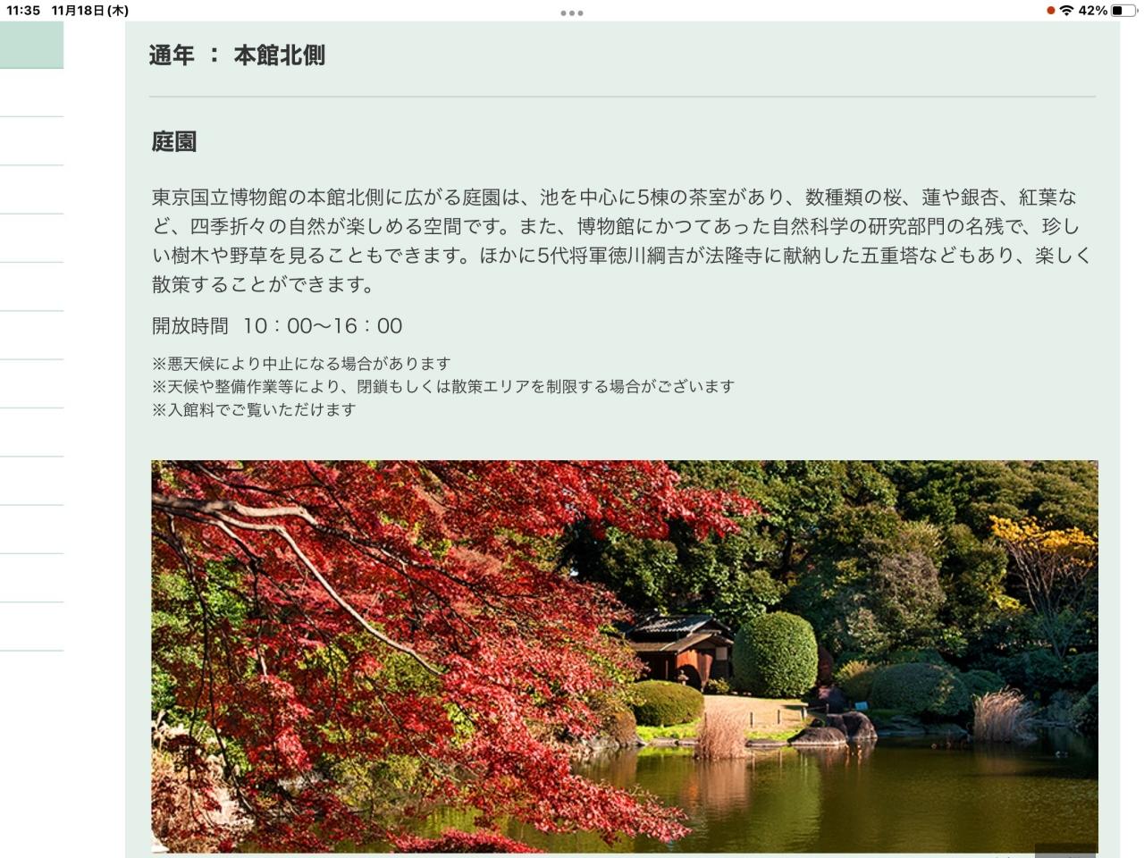 東京国立博物館庭園に行きます。