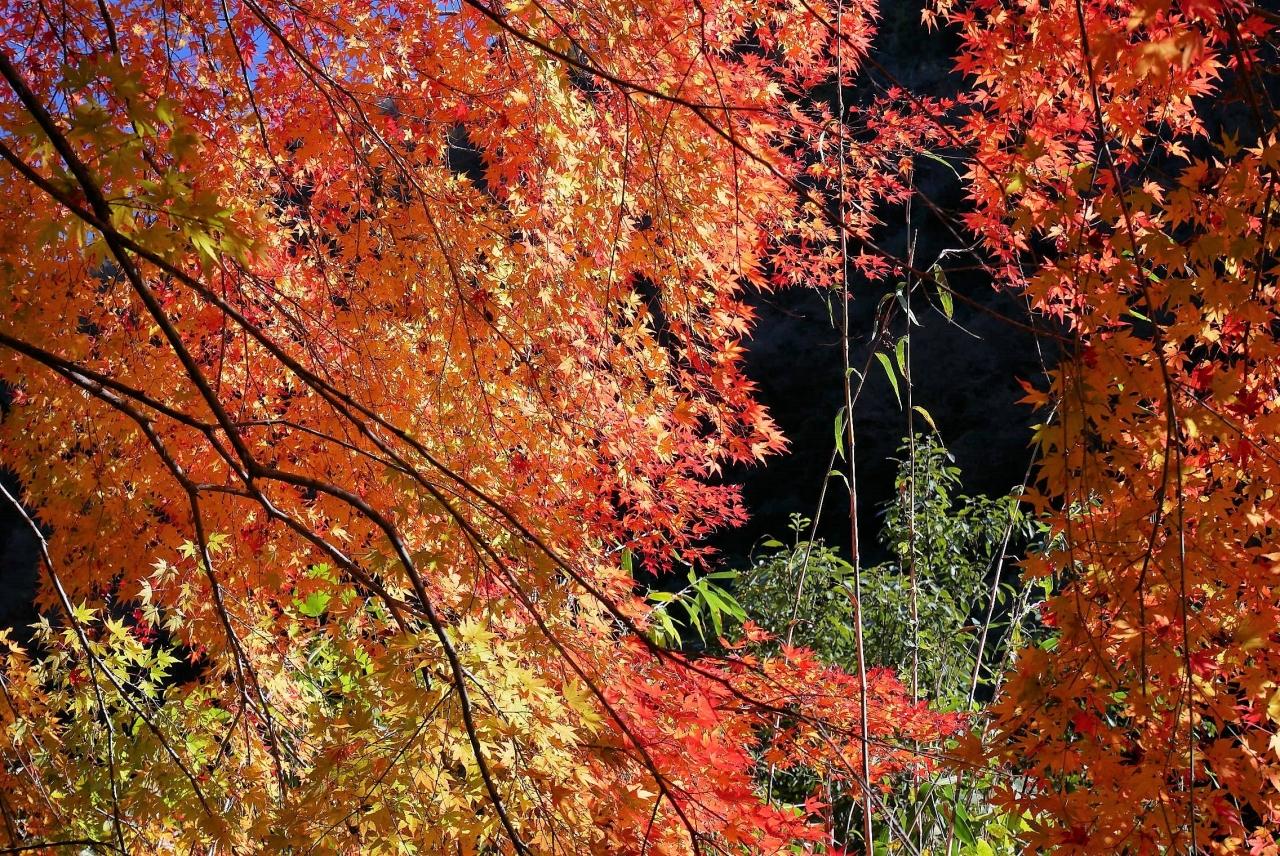 ■ 紅葉が秋の陽ざしに照らされて燃えているようだ