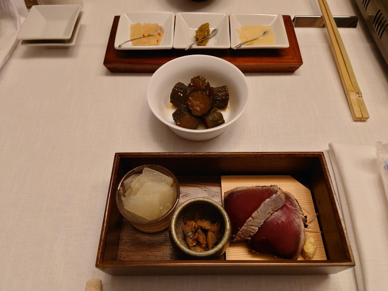 カツオのたたきと薬味など