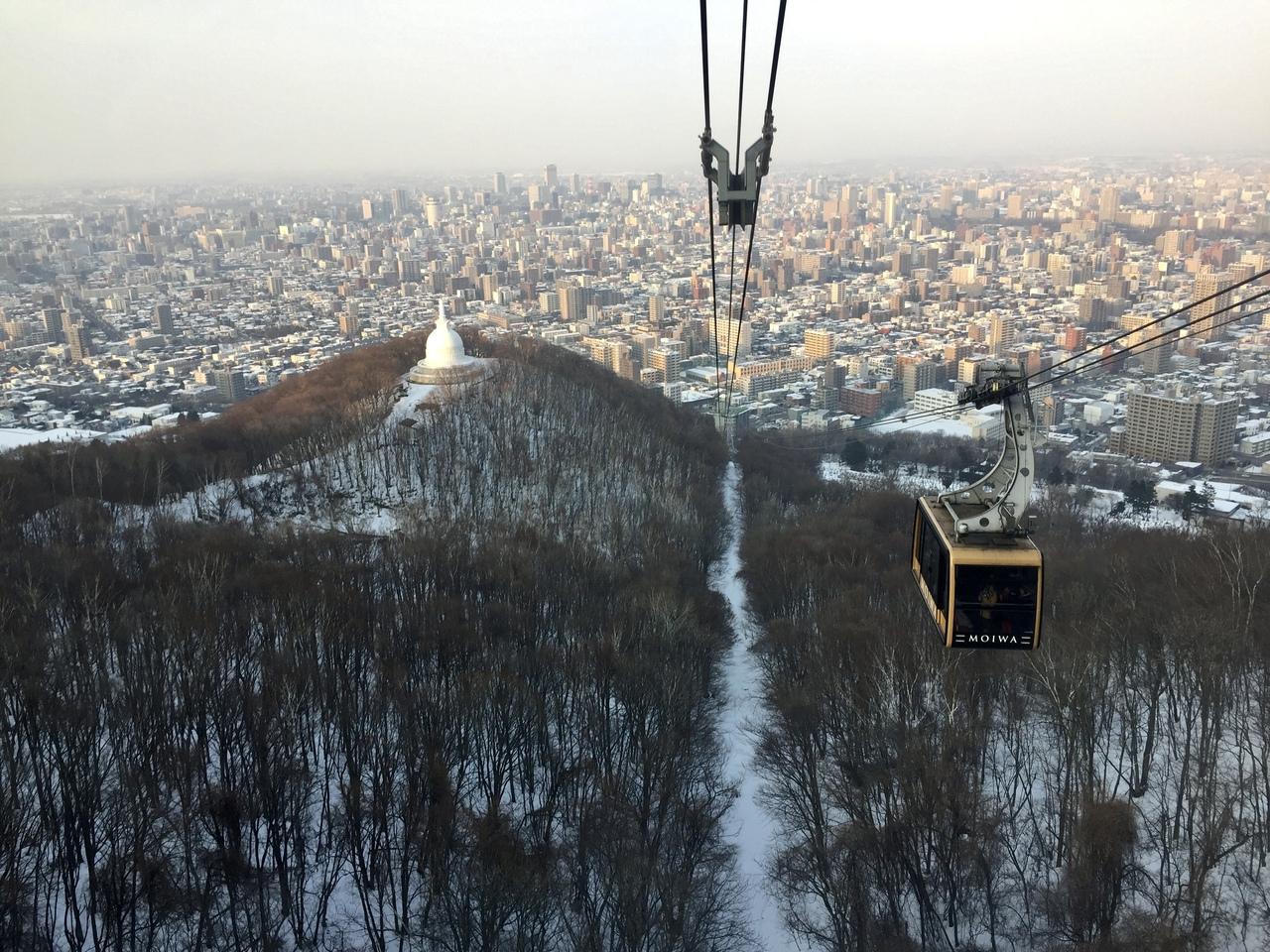 山頂に行くためには、ロープウェイとミニケーブルカーを乗り継ぐ必要があります。藻岩山ロープウェイ 乗り物