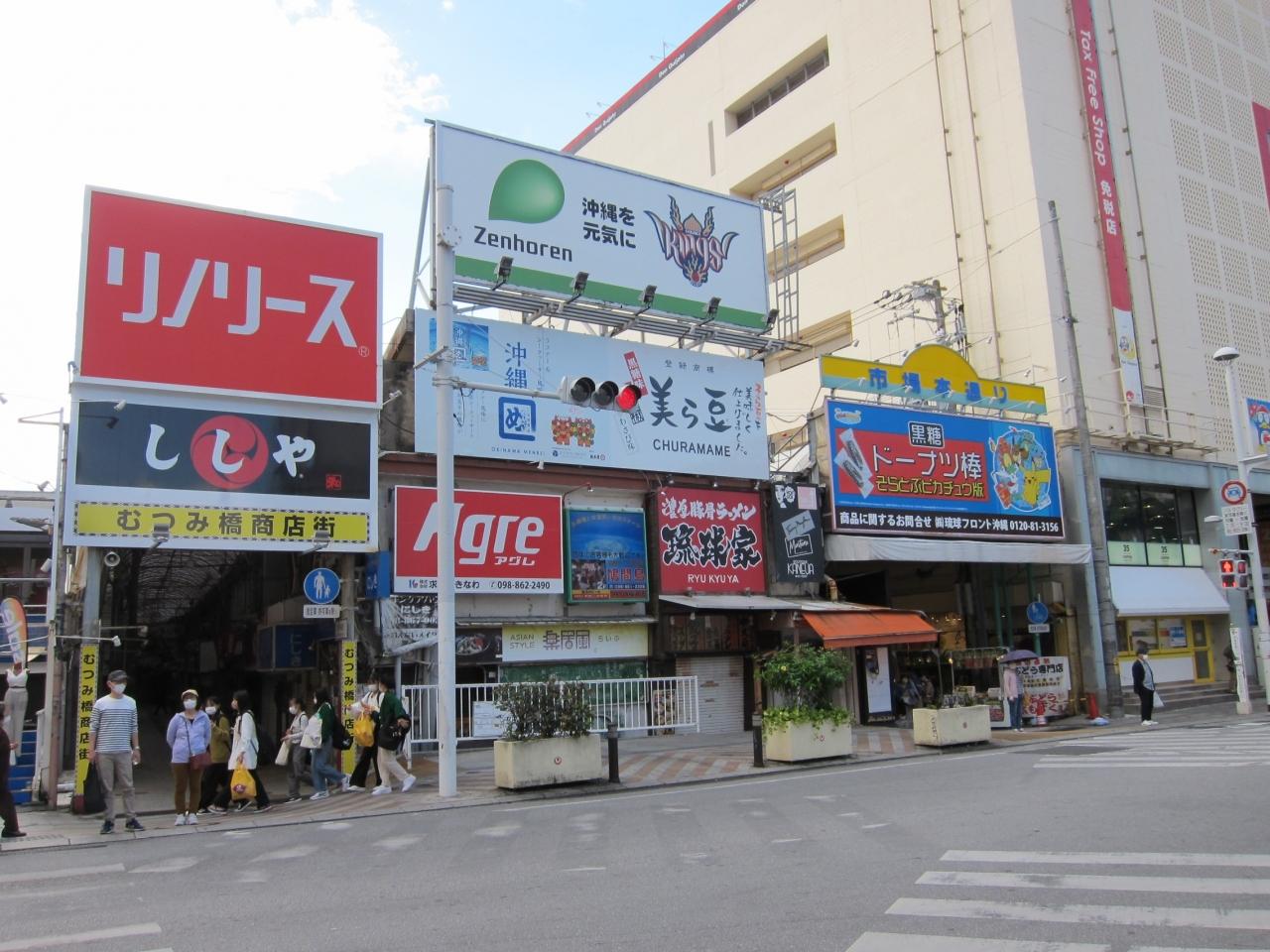 賑やかな国際通りの出入口、むつみ橋交差点まで戻って来ました。