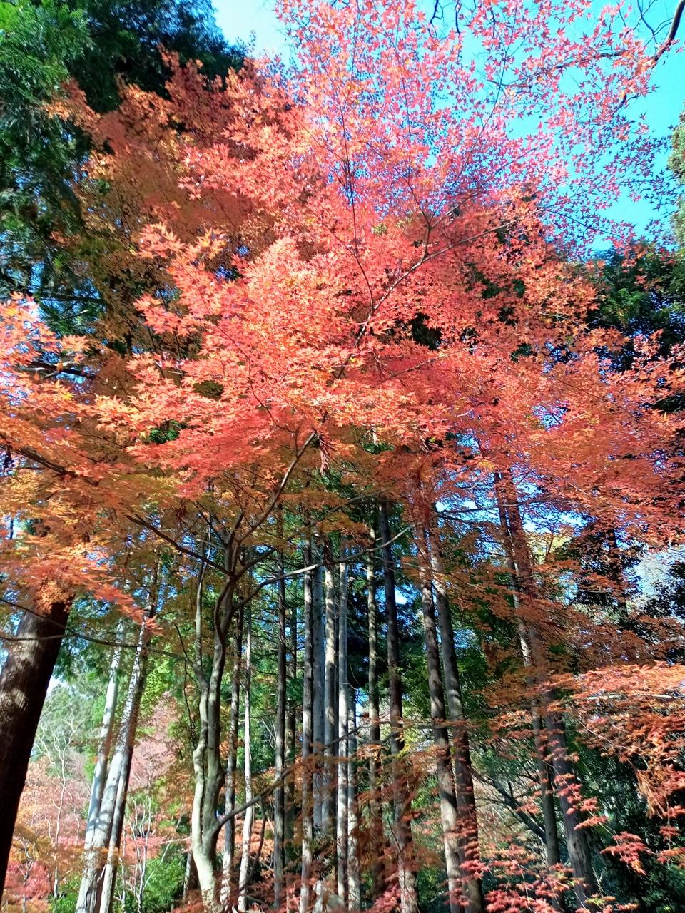 背の高い壮大で艶やかな紅葉は縦にして撮影すると最高です!これも別次元、異次元の美しさ!歩きながら絶句します!