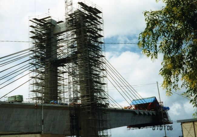 落ちたKBブリッジの再建工事が日本の援助によって始まっていました。