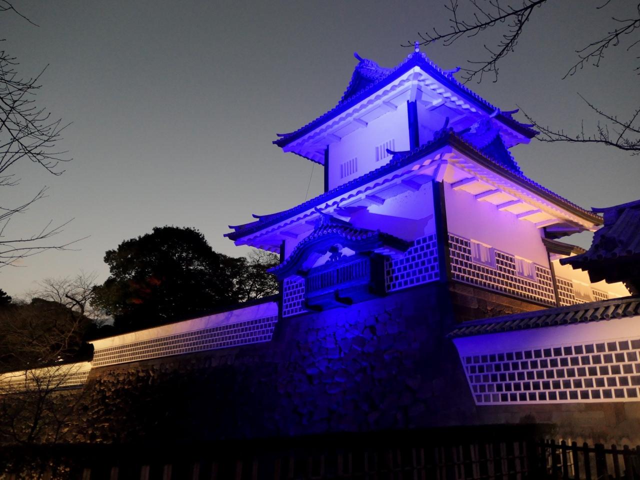 金沢城公園のライトアップは、期間限定で日没から21:00の間、入場無料で行われている。