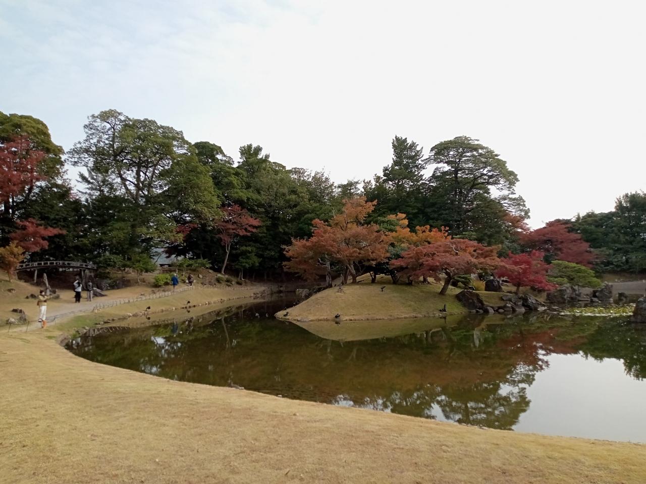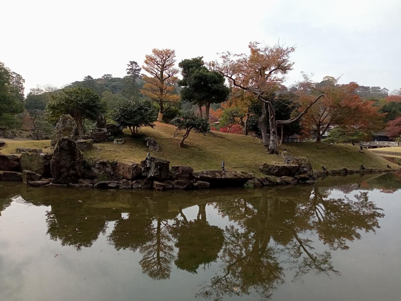 こうして庭園、紅葉、そして天守閣が見える別世界のような美しい玄宮園を約40分楽しみました。午前11時、玄宮園を後にします。