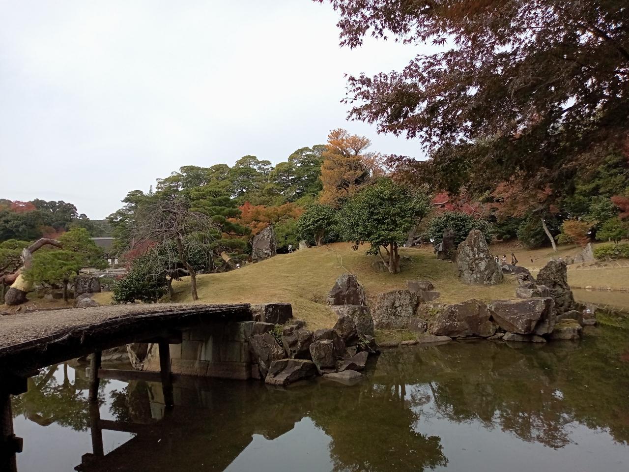 庭園は池や紅葉、建物以外にも石や橋、芝生などの景観も見事ですね。