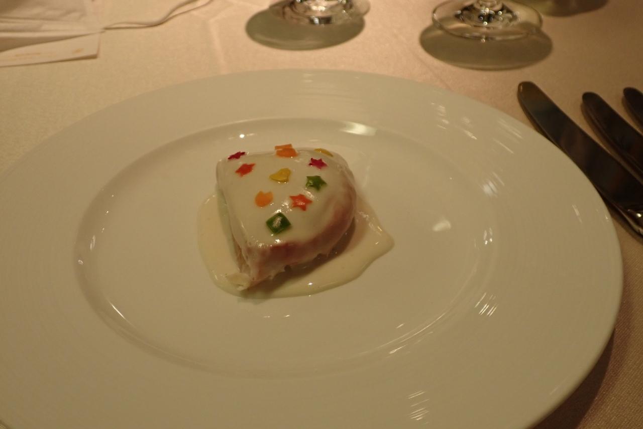 レストラン・ラタンでフレンチを楽しみます。スパークリング・ワインから始めますが、その後のワインは肉・魚に合わせて赤・白のノンアルコールを頂きます。
