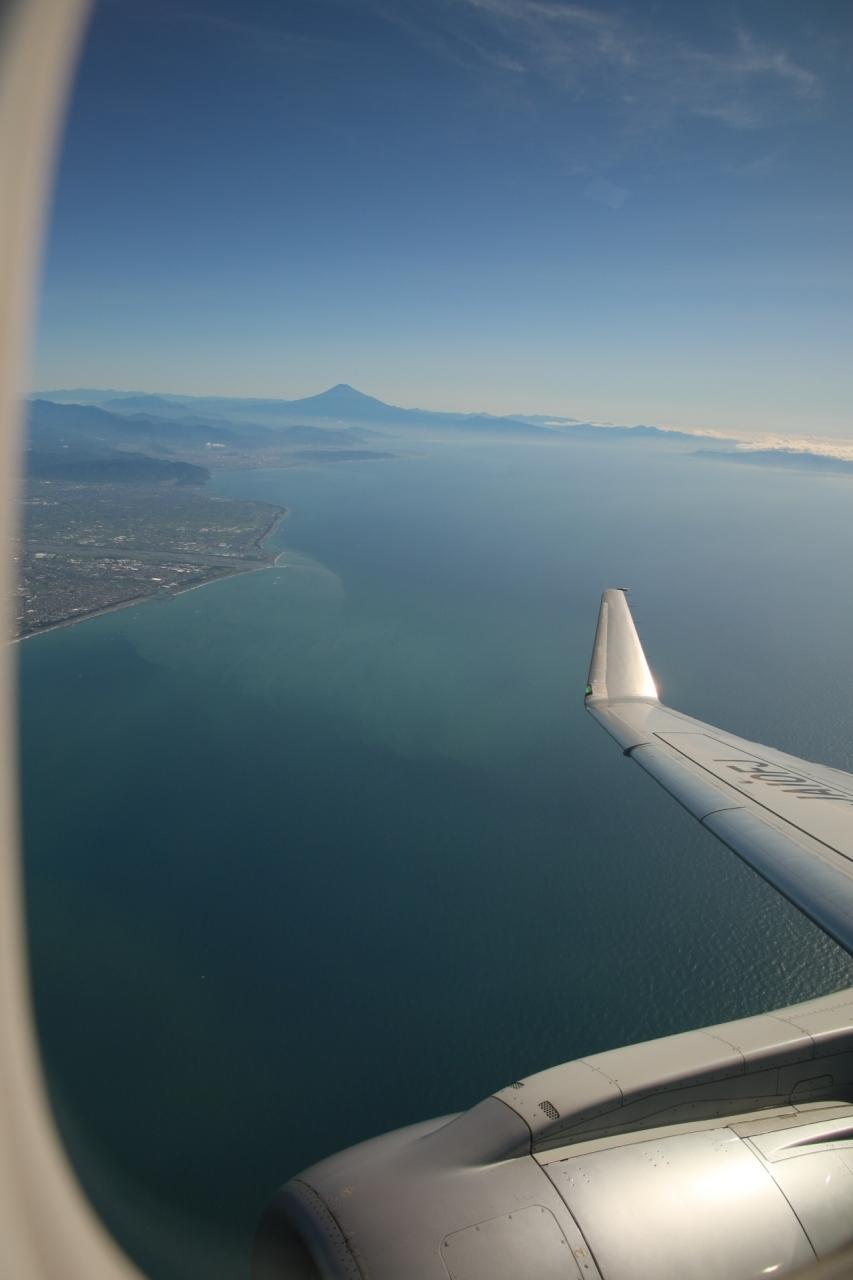 プッシュバックし滑走路に向かっている間にも、離陸するときにも、富士山はずっと見えていた。