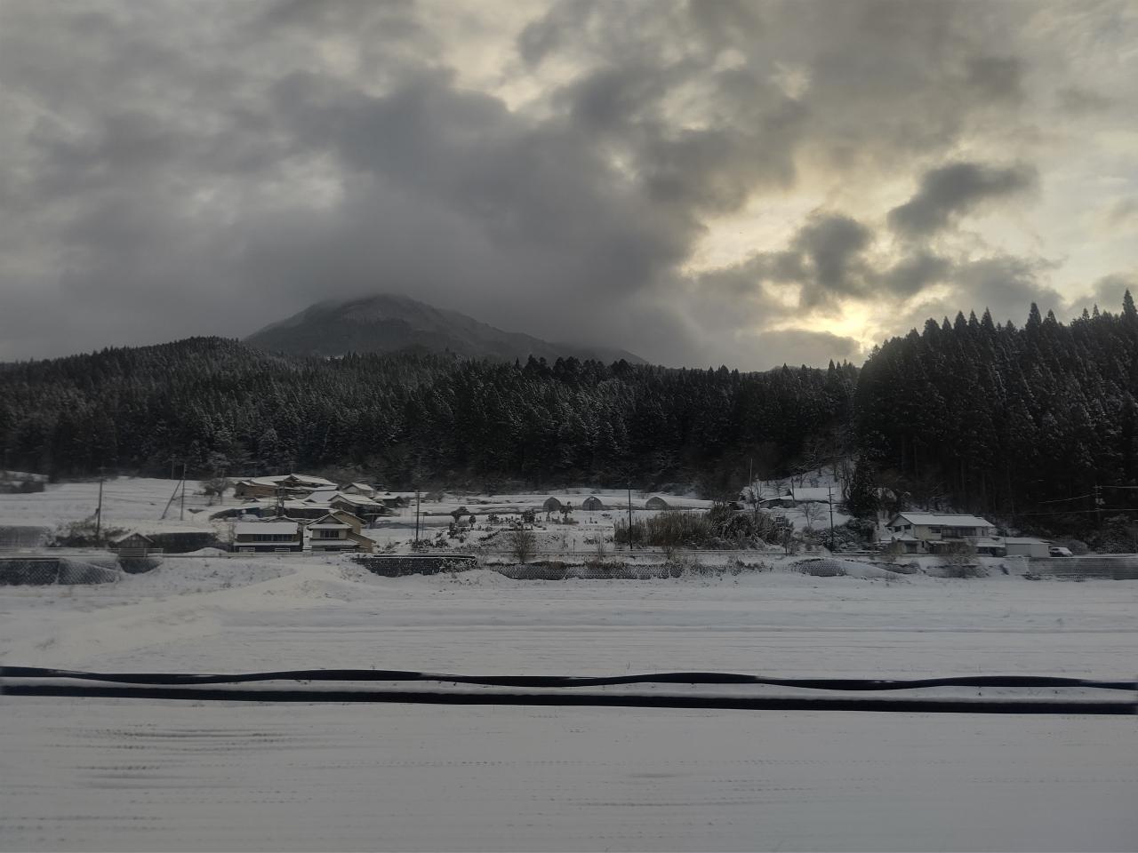 倉敷駅から伯備線に入り、備中高梁駅を過ぎたあたりから雪景色