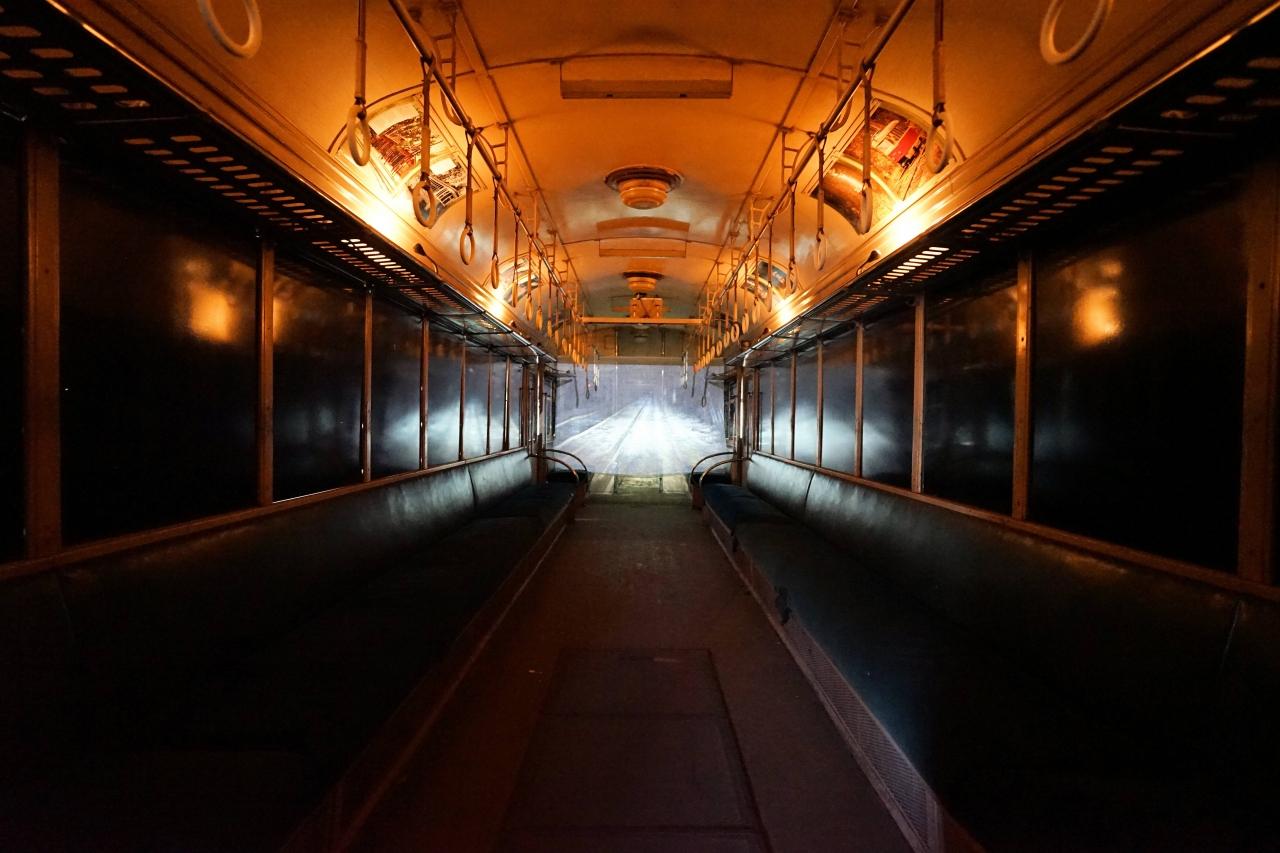 キハ5800形の車内はウクライナの電車の雰囲気を再現。 -