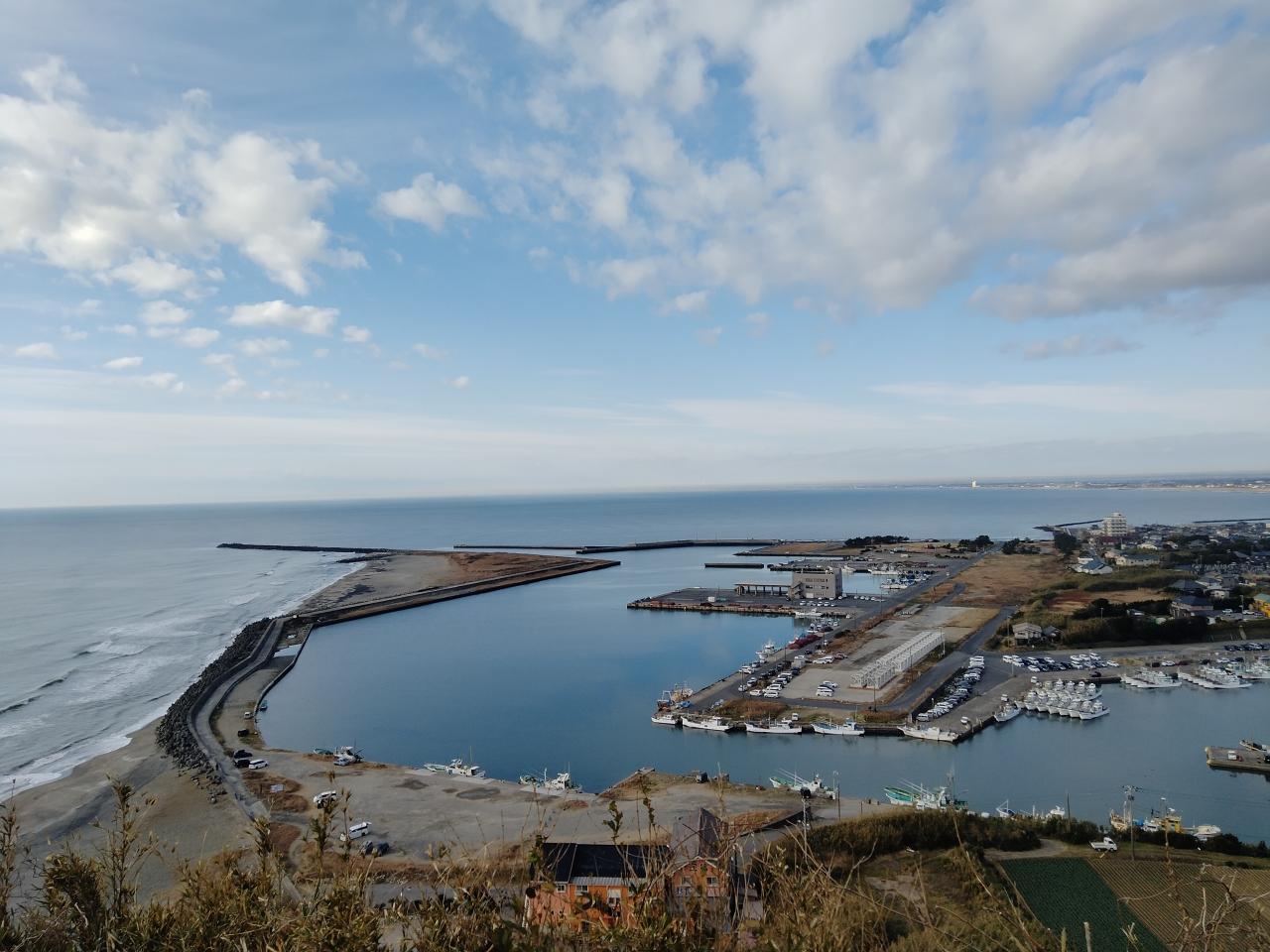 眼下に飯岡漁港が広がり、その向こうに九十九里浜の湾曲した長い海岸線を一望でき、「日本の夕陽・朝日百選」「日本夜景遺産」等に認定されている絶景スポットです。 -