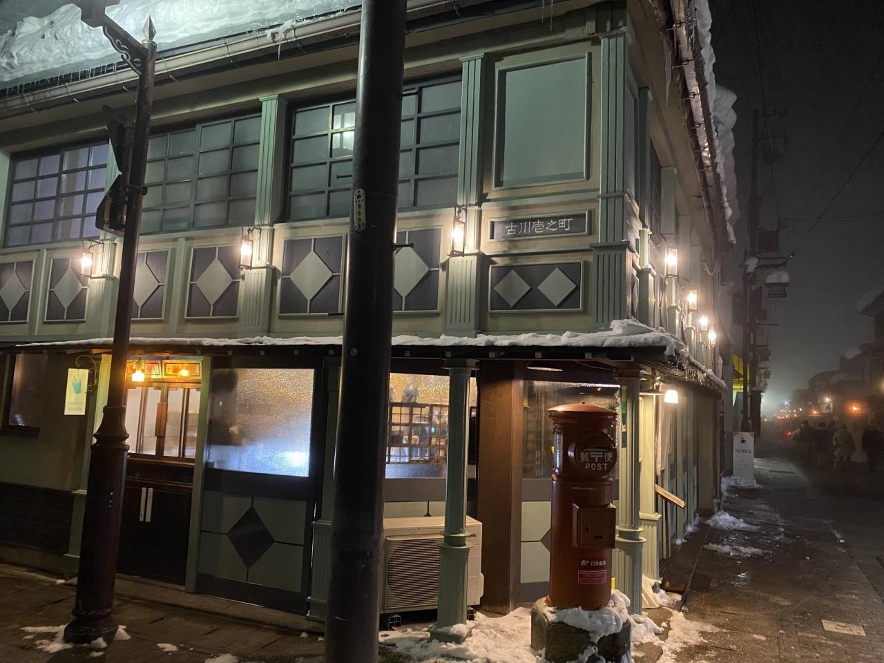 夜の飛騨古川駅前通り。