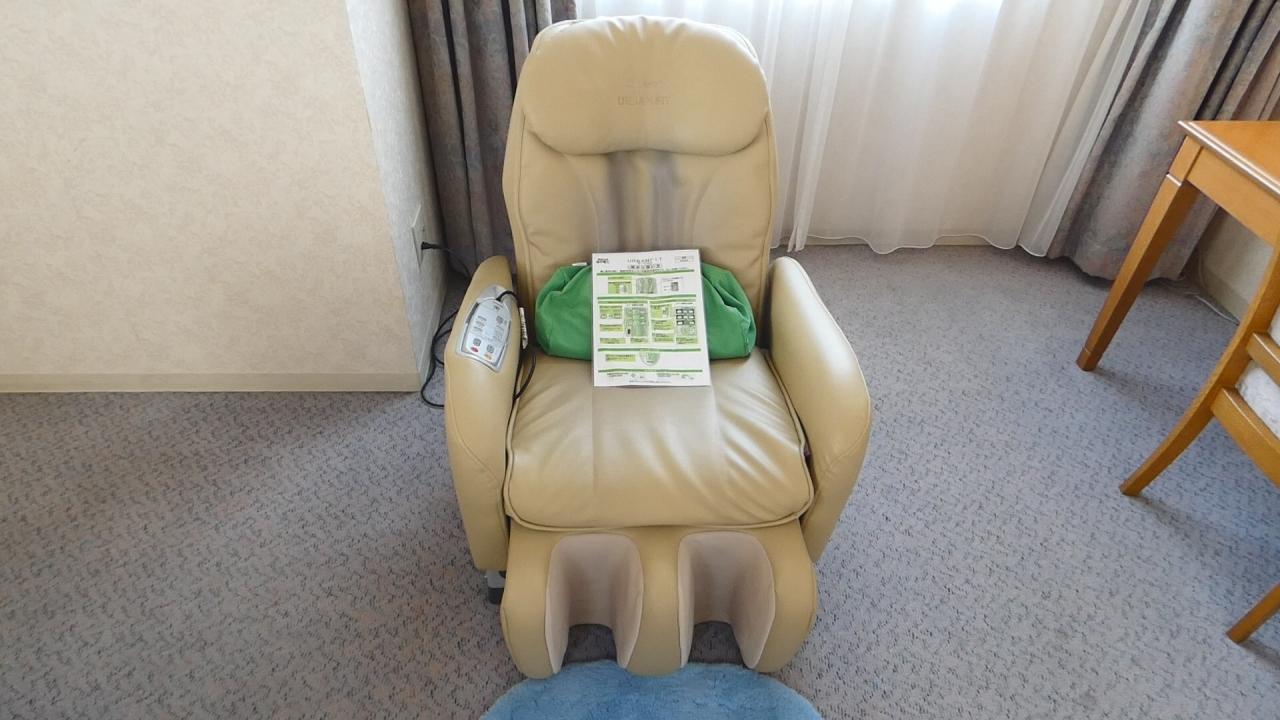 ピースフルルームは基本的にデラックスツインルームと同じですが、若干内装のカラーが違うのと、大きなマッサージチェアーが備わります。