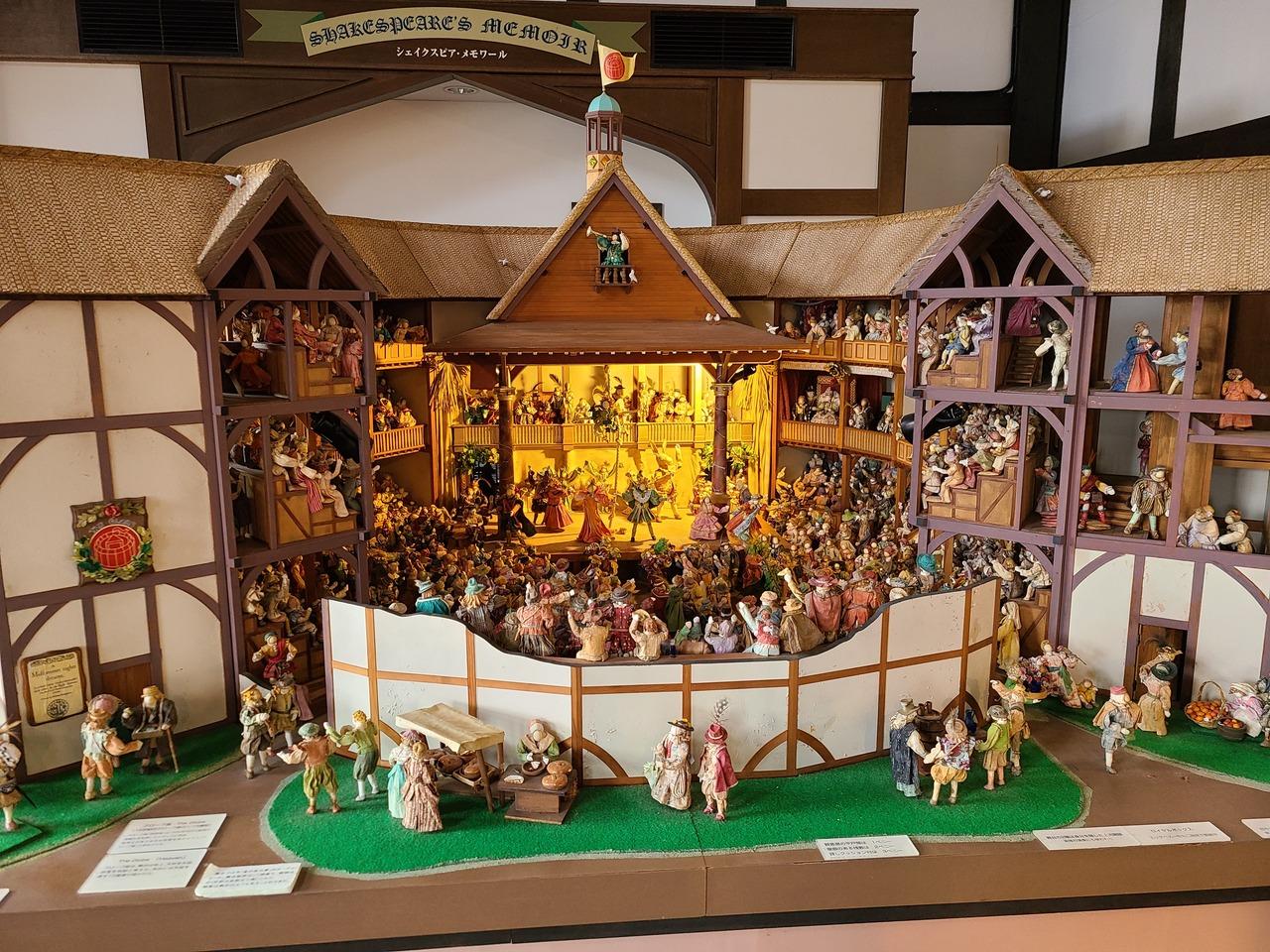 更に圧巻なのが【16世紀グローブ座】のジオラマです。当時のグローブ座を15分の1で再現ているそうです。劇場の周りの芝生にも人形がいました。