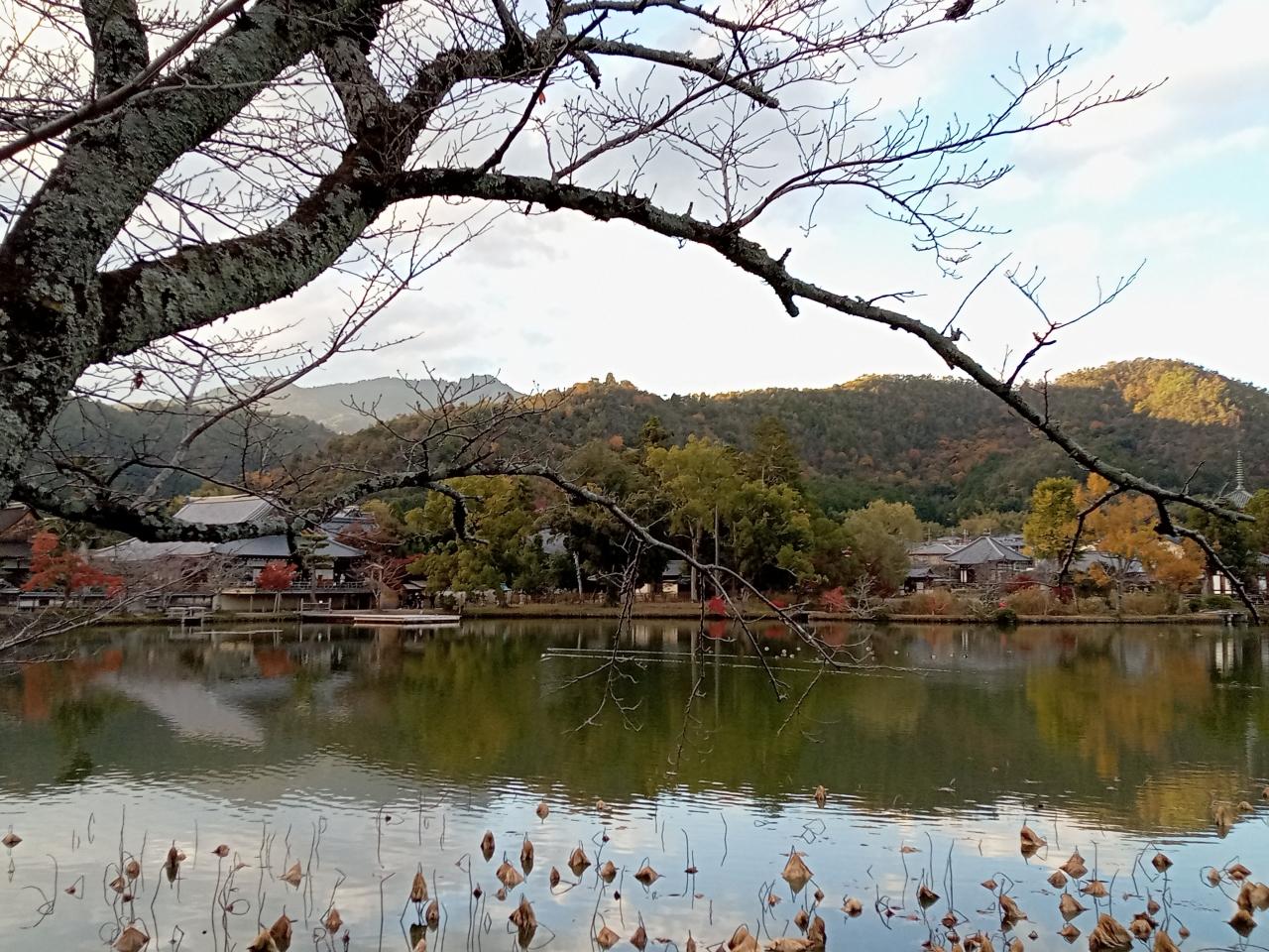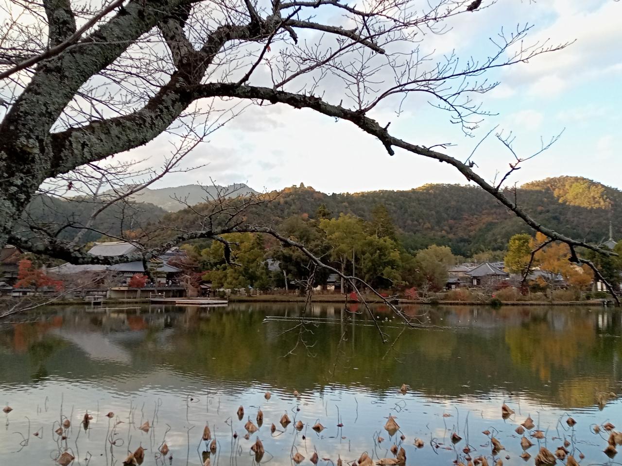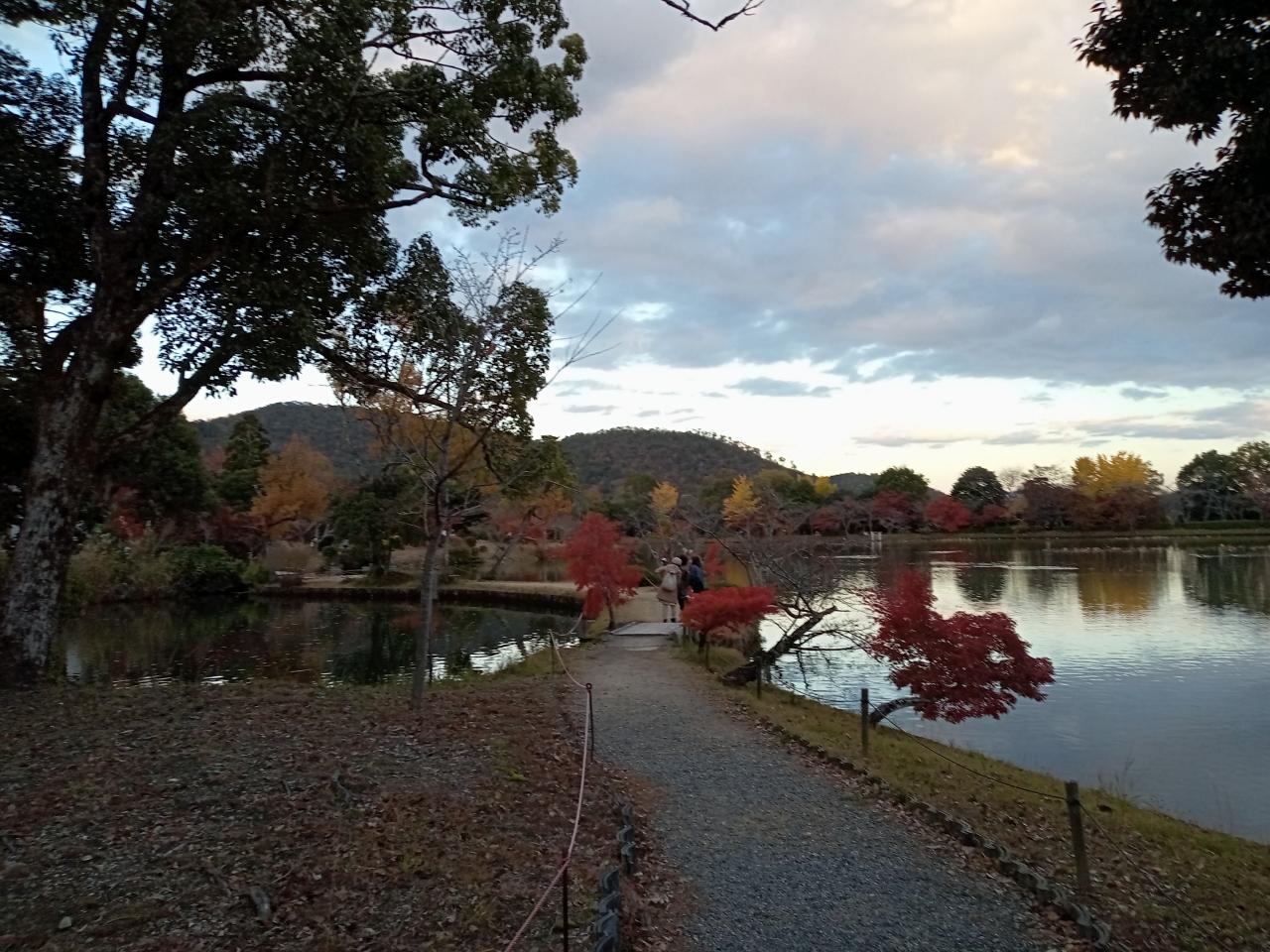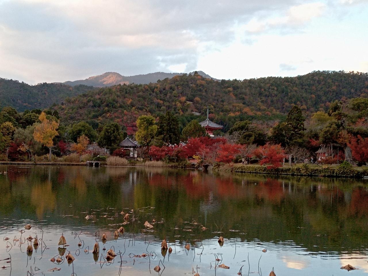 時刻は16時45分頃、大覚寺を後にします。大沢池沿いの紅葉、池の水面、宝塔や建物群の景観は実に美しかったです!そして急ぎ足で廻った社殿内も枯山水庭園や社殿の景観も見事でした!
