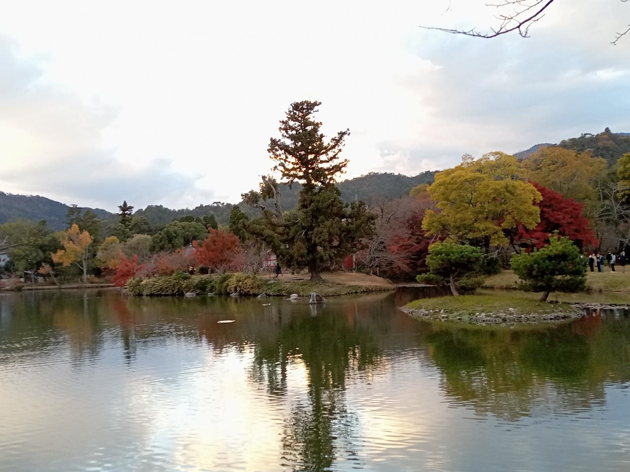 それでも色づいている紅葉や芝生、そして綺麗な大沢池の景観は素晴らしいです。